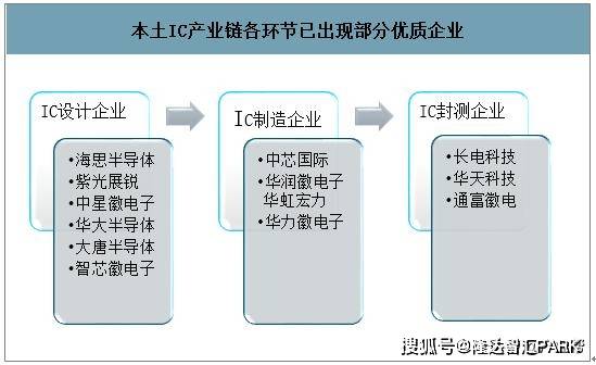 当前,中国集成电路产业已经形成了集IC设计、芯片制造、封装测试三大主要环节以及设备、原材料等支撑配套环节共同发展的较为完善的产业链布局。在各个环节,都涌现出了一批优质的企业,例如华为海思、紫光展锐、中兴微、兆易创新(603986.SH)等芯片设计公司,以中芯国际(0981.HK)、华虹集团、上海先进为代表的芯片制造商,以及以长电科技(600584.SH)、华天科技(002185.SZ)、通富微电(002156.SZ)等为龙头的芯片封测企业。