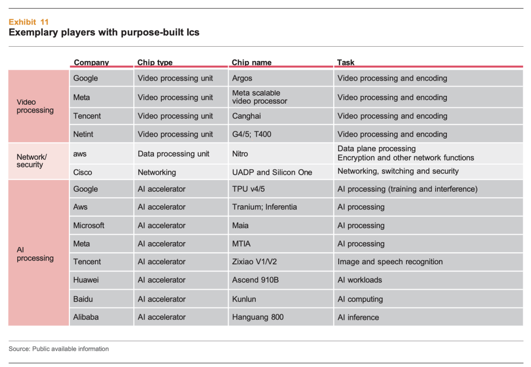 在市场竞争方面,英伟达在数据中心 GPU 市场占据主导地位,但谷歌的 TPU 等定制 ASIC 芯片也在逐渐崭露头角,挑战其地位。其他企业如 Marvell、Broadcom 等也通过与云服务提供商合作或自主研发,积极参与 AI 芯片市场竞争。