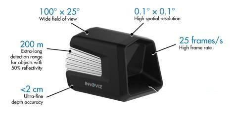 InnovizOne具有200米的深度精度优于2厘米的范围。它保持100度~25度的视场,0.1~0.1度的空间分辨率。该设备以超过6 Mpixels/s的3D分辨率提供25帧/秒。