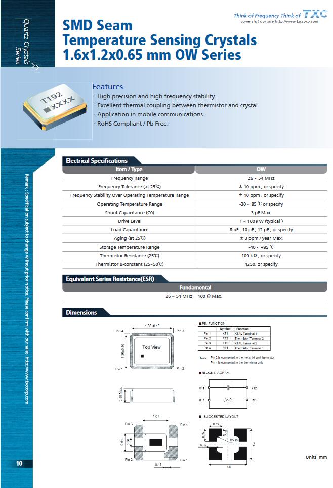 SMD Seam Temperature Sensing Crystals 1.6x1.2x0.65 mm OW Series